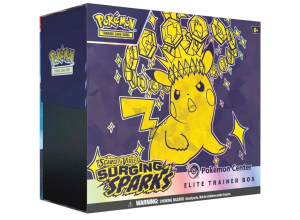 You also get 65 card sleeves, 6 damage-counter dice, 2 plastic condition markers, a collector’s box with 4 dividers, a player’s guide to the Scarlet & Violet—Surging Sparks expansion, and a code card for Pokémon Trading Card Game Live.